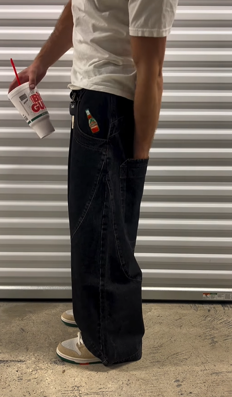 - Baggy, Wide-Leg Fit with a Subtle Flare.