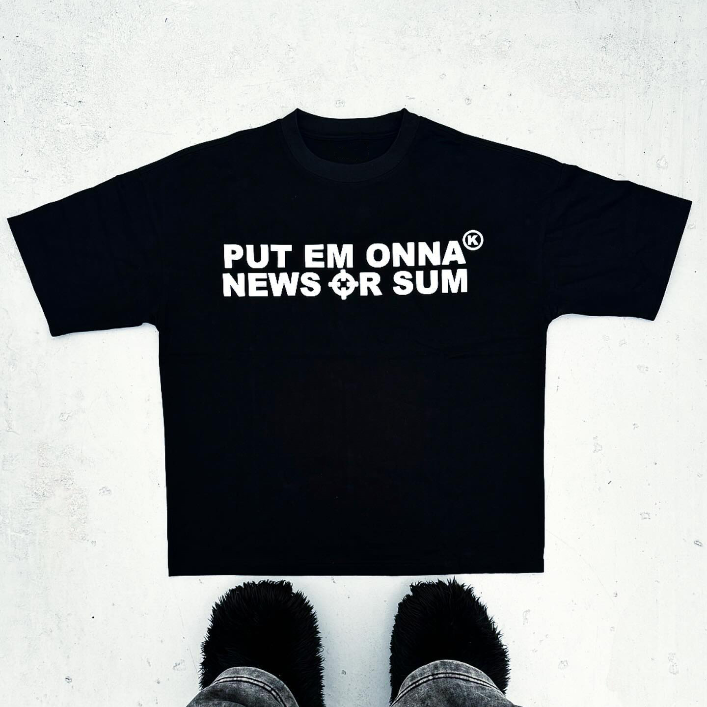 Put em onna news or sum printed T-shirt