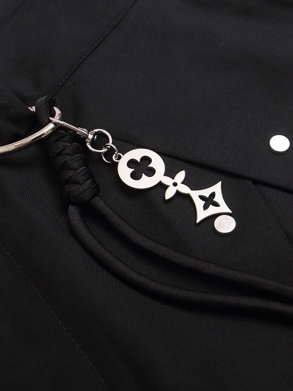 • Design Elements: Asymmetric hem design, decorative tassel with beads, button and belt loop closure