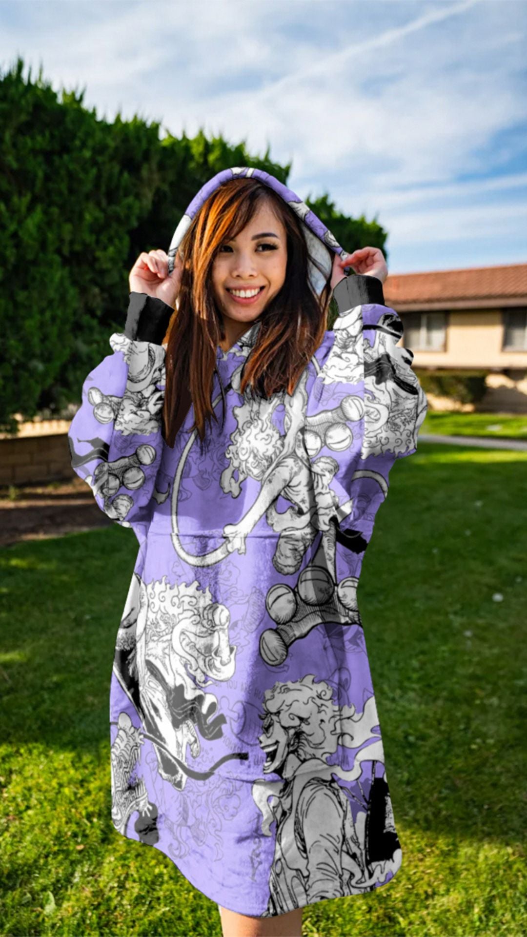 Stay cozy and warm with our anime hoodie blankets! Featuring a variety of styles, each one-size-fits-most hoodie blanket features a sherpa-lined flannel exterior, perfect for snuggling up and binge-watching your favorite anime. Our anime hoodie blankets make the perfect gift for any anime enthusiast!